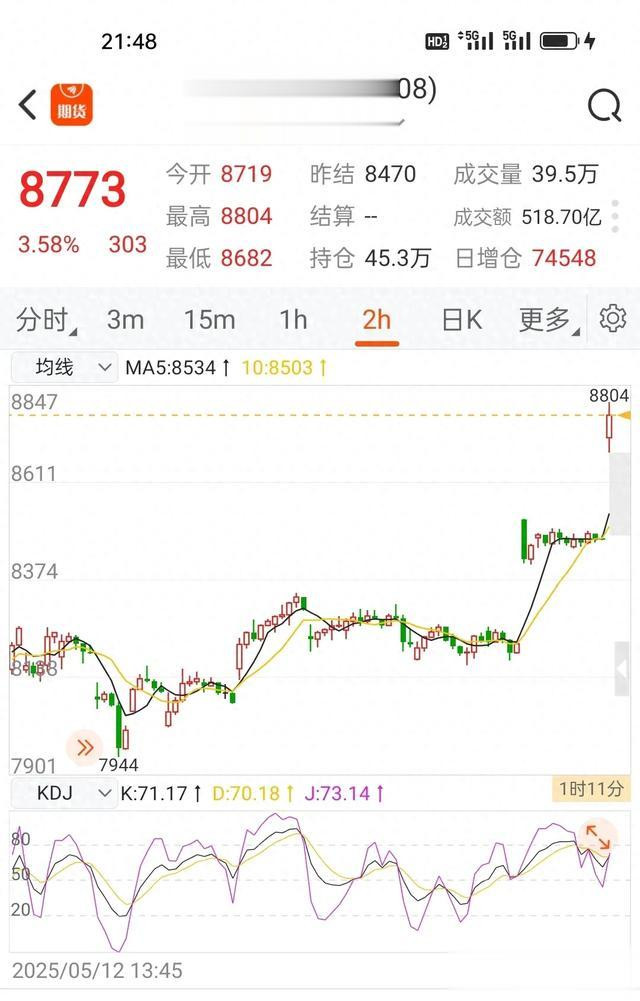 沪银2508连续的跳空高开配资平台最新,大张大合,留守空头仓单嗦嗦发抖。期价已冲上8773.